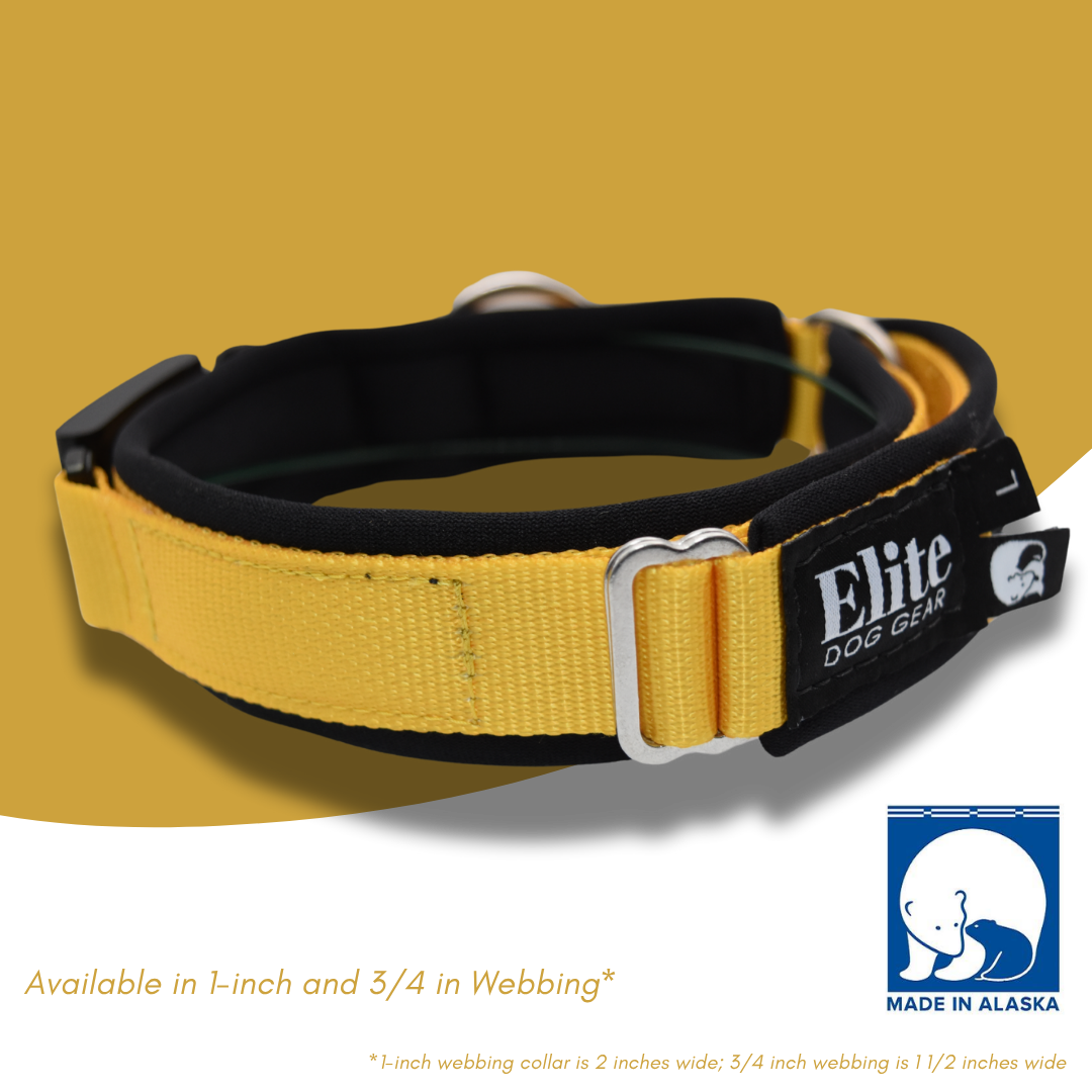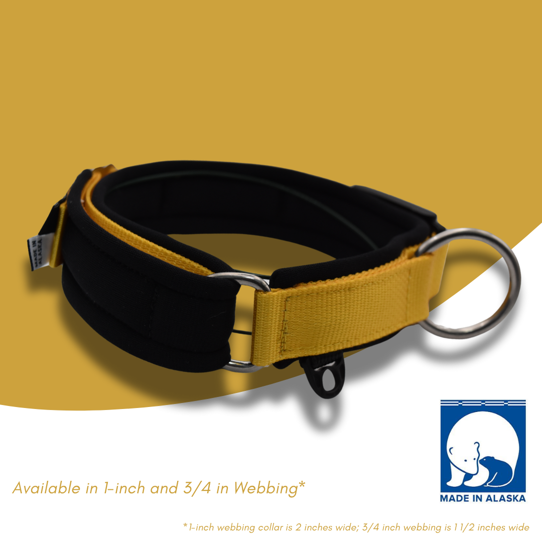 Introducing the FI Arctic Circle Collar, where simplicity meets professionalism in celebrating your dog's adventurous spirit. Crafted with precision and care, our collars are made from top-notch materials: utility polyester webbing, polyester-backed Yulex plant-based neoprene padding, and marine-grade stainless steel hardware.